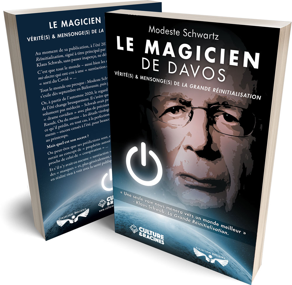 Modeste Schwartz est l’auteur du livre Le Magicien de Davos : verité(s) et mensonge(s) de la grande réinitialisation qui analyse l’ouvrage publié par MM. Schwab et Malleret à l’été 2020 et intitulé Covid-19. La Grande Réinitialisation.. Modeste Schwartz souligne comment Klaus Schwab déguise ses instructions en constat et pratique l’art de la conspiration. Schwab a une idée tellement précise des modalités de la réorganisation de l’ordre social post-pandémique qu’il ne prend même pas vraiment la peine de formuler divers scénarios. Modeste Schwartz insiste : même un lecteur d’intelligence moyenne comprend au bout de la lecture de quelques pages du livre de Schwab que c’est un programme qu’il a en main. Et que ce programme est déjà en train d’être appliqué. Pour Modeste Schwartz qui a le sens de la formule, il est évident que nous avons face à nous des covidealers qui « ne sniffent pas leur propre dope« . Modeste Schwartz aborde aussi des aspects philosophiques du plan de Klaus Schwab qu’il qualifie de néopaïen, insistant sur le fait que celui-ci, dans le tout dernier paragraphe de sa conclusion, place une sorte d’envoi à « Mère Nature« , explicitement désigné comme telle. Schwartz décortique la prose de Schwab qui prend plaisir à célébrer le hold-up réussi des multinationales numériques sur les économies nationales. Schwartz met aussi en évidence le fait que Schwab sait bien entendu parfaitement de quel côté de l’échiquier politico-idéologique la menace risque de poindre pour lui et ses complices : « Mais il y a un côté plus sombre à tout cela. Cela déclenche également une montée des sentiments patriotiques et nationalistes, avec des considérations religieuses et ethniques troublantes qui entrent également en ligne de compte.« , écrit Klaus Schwab à la page 177 de son programme de Great Reset !