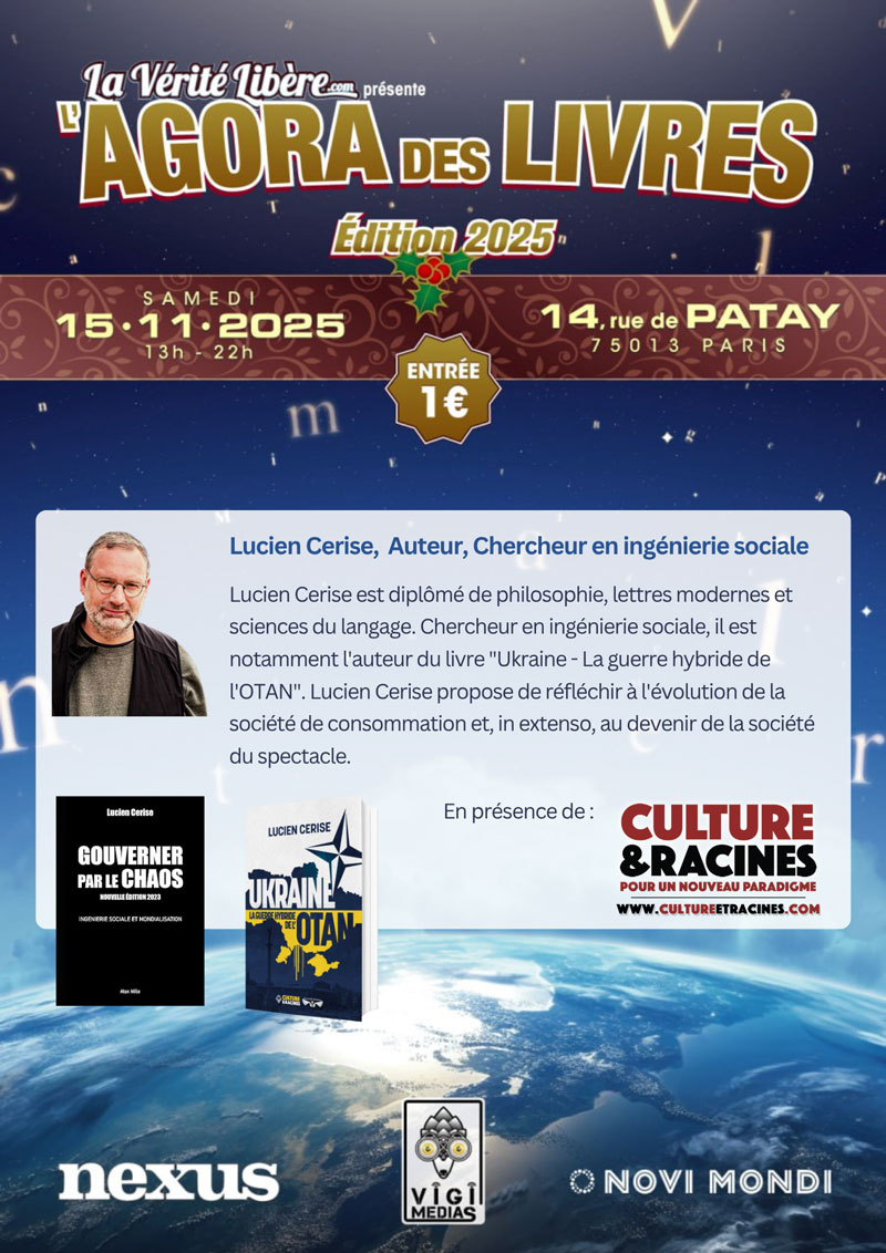 Culture & Racines et Lucien Cerise seront présents à la 4ème édition de « L’Agora des livres » à Paris le 15 novembre 2025