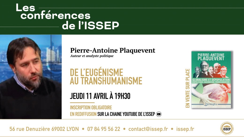 Jeudi 11 avril à 19h30, Pierre-Antoine Plaquevent, auteur et analyste politique présentera lors d’une conférence à l’ISSEP le sujet : De l’eugénisme au transhumanisme.