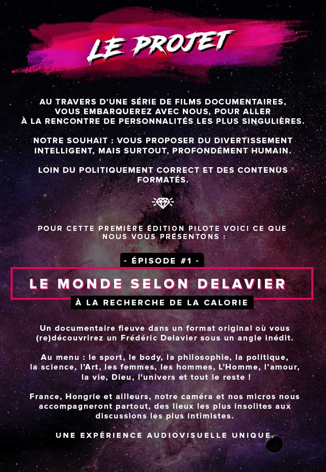Projet d'une série documentaire sur Frédéric Delavier, l'auteur français le plus vendu au monde. Son livre, L'éveil des consciences sera bientôt réédité aux éditions Culture & Racines.